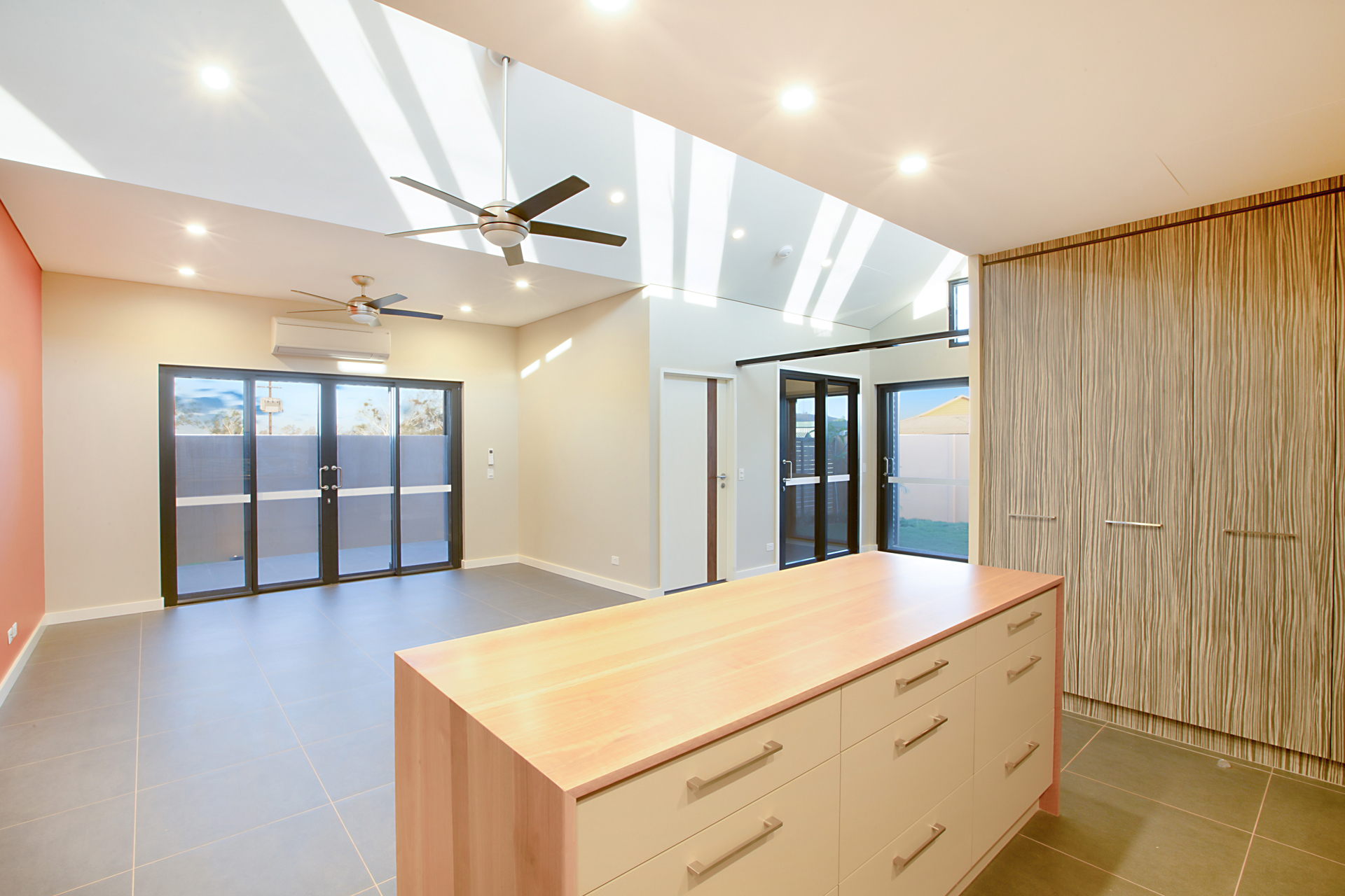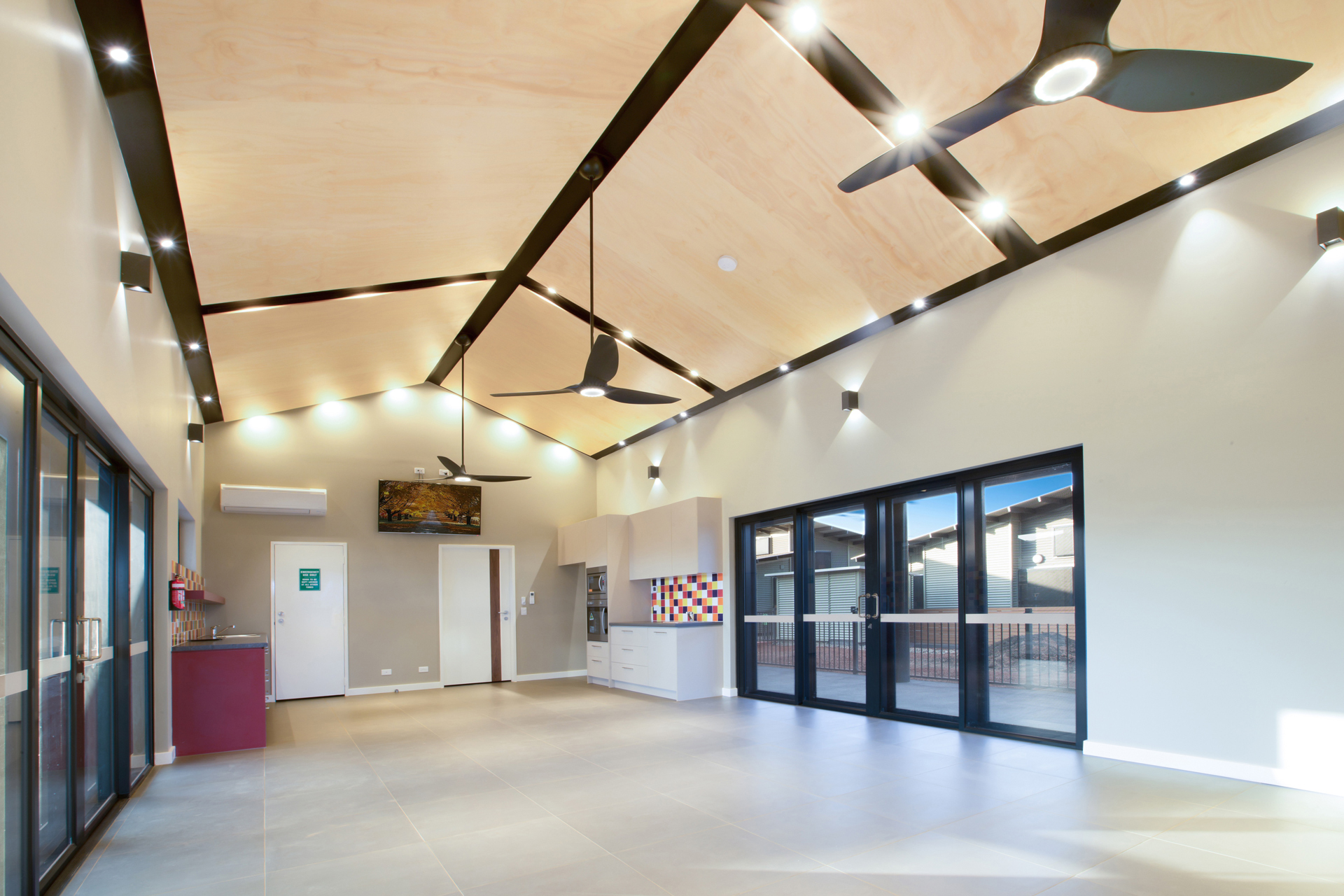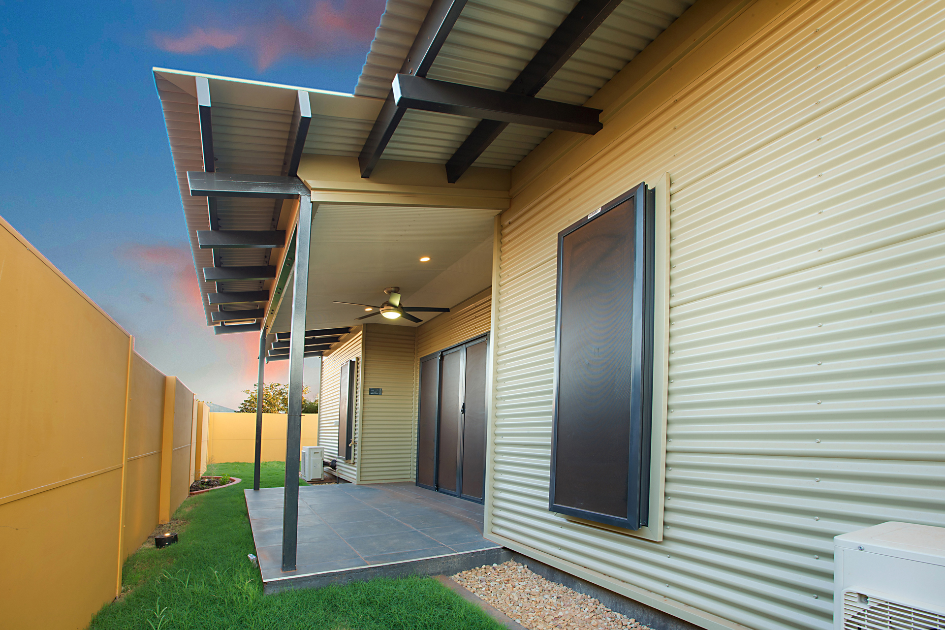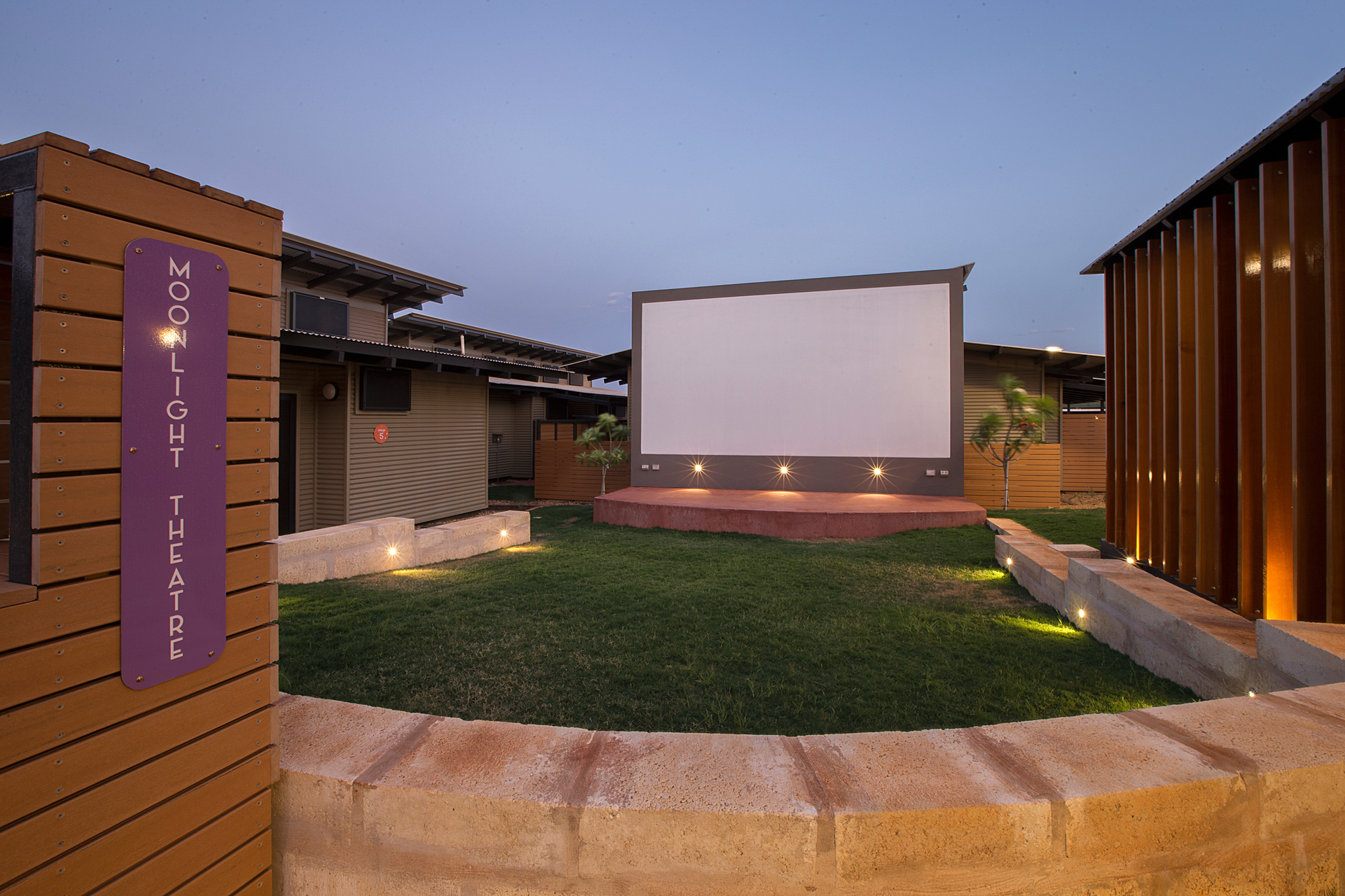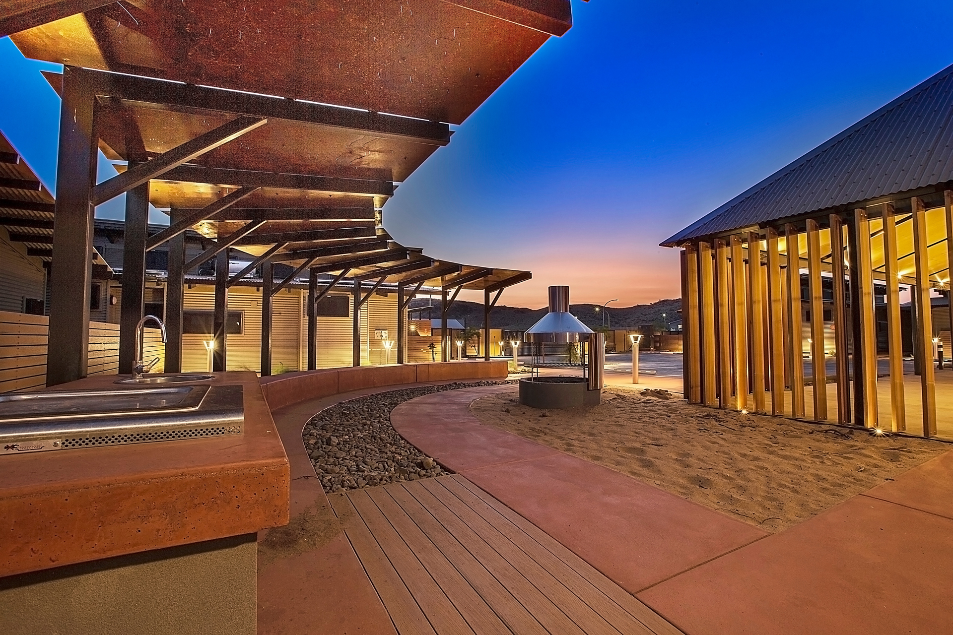 The Ngarluma Aboriginal Corporation (NAC) initiated the housing community project with the aim of addressing a number of cultural, social and physical requirements of the Ngarluma elders. The site is located in the Pilbara within the Yaburriji Estate. The nine units were designed to accommodate the needs of the Ngarluma elders and to promote their position in the community as mentors and role models for the middle aged and younger Aboriginal people. The mentoring is facilitated through a number of communal spaces that are spread around the core of the village. The strong colour palette present was inspired by an artwork created by one of the Ngarluma Elders and supported the Ngarluma tradition of creating art.