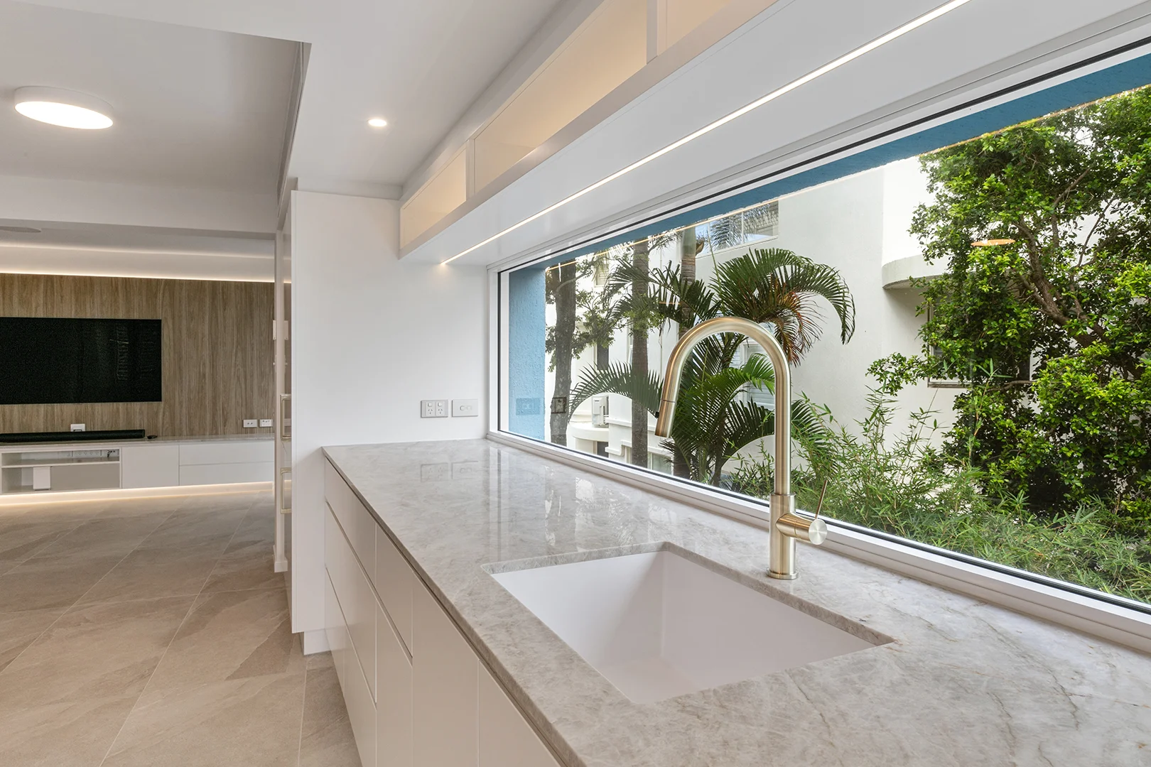 Queensland living embraces the outdoors — and so do we. Our kitchen designs often include servery windows, bifold doors, and outdoor breakfast bars that extend the heart of the home into alfresco entertaining zones. The result is a cohesive, flowing layout that supports both indoor comfort and outdoor connection.
