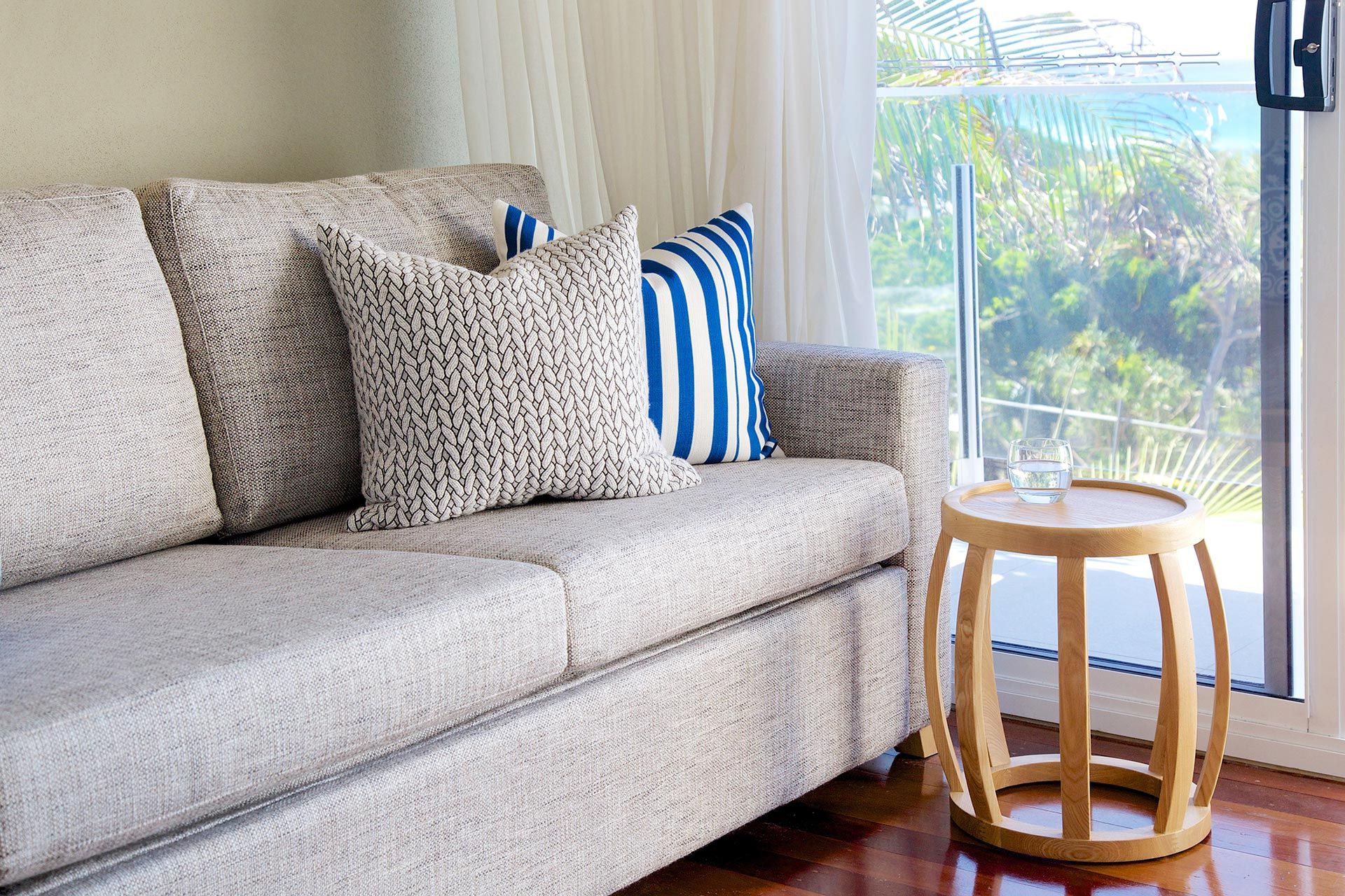 These clients requested that their new apartment design radiate a coastal theme to ensure that weekend holidays with the family and grandchildren would provide the necessary sea change experience. Our commission involved Interior design for all areas including joinery, lighting, finishes and fixtures as well as selection of furniture, rugs, window treatments, soft furnishings, art, and decor items.